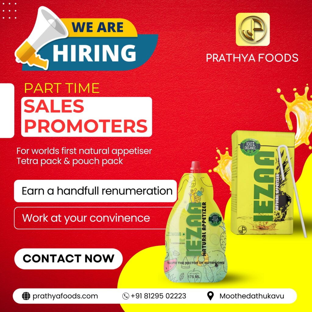Prathya Foods Pvt. Ltd., the manufacturer of IEZAA – Natural Appetiser, is inviting applications for Sales Promoters to support our in-store promotional activities across selected retail outlets.